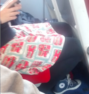 ... a skirt being warn by a young lady sitting across the aisle from the fbbs as they wended their way from Axminster to the Big Smoke.