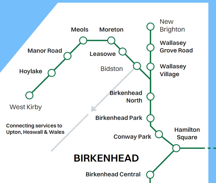 The line from Chester via Bidston was part of the Cheshire Lines Committee network..... trans ran through. Now they terminate on one side of the island platform.They have to get out of the way quickly to avoid the 15 frequent Merseyrail trains.The West Kirby and Wallasey lines were operated by the Wirral Railway.
