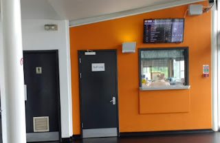 ... it was a near secret travel information office. There was a departure screen, a man in a yellow hi-viz "gilet" and a gents' (and on its left a ladies') waste disposal unit.