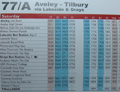 Just for good measure, the good folk at Ensign also provide you with a full 77/77A timetable, all the way from Aveley to Tilbury and including tghe Z1 and the Chadwell diversions.fbb's first "go" at a Thurrock map is somewhat evasive on the detail of these variations ...... quietly ignoring the 73A.
