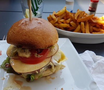 But before the arduous hour's run back to Cherbourg, nosh was needed. Situated incongruously in a little bloch of new-build housing ...
